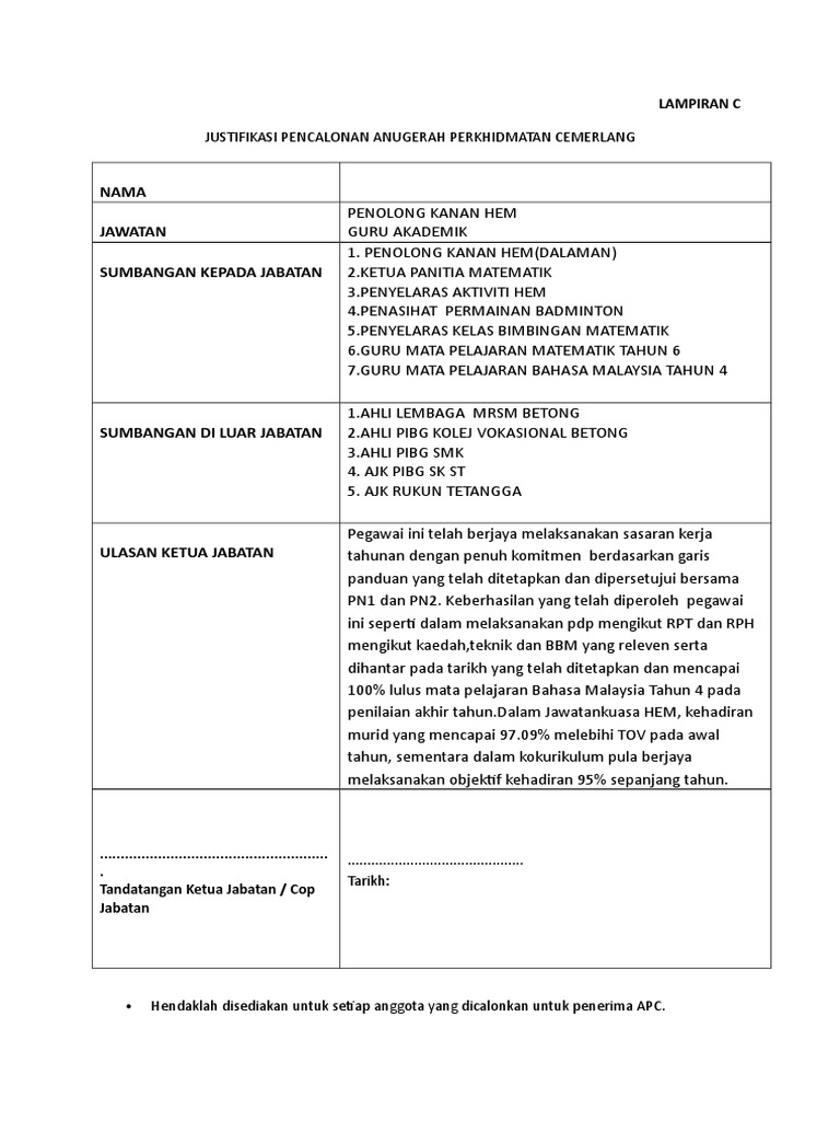 Bicara ketua jabatan teknologi pendidikan. Teringat cc rox bgtau puan proposed aku for apc 2008.tapi nak wat camne.2008 aku keje kat perlis.sometimes, aku dah agak untuk tahun ni. Doa majlis anugerah cemerlang pegawai. By sk sri setia jaya · updated about 2 months ago. Bersyukur atas penghargaan yang diberikan kepada insan yang kerdil ini. Ismail bin md zain pensyarah gred dg 54. Dengan anugerah ini akan ku titipkan akujanji untuk terus berkhidmat untuk negara yang dicintai ini dengan cemerlang pada masa akan datang. Kursus pemantapan nilai dan etika dalam perkhidmatan 2019. Majlis anugerah apc & jamuan hari raya kelab kesba & kep 2016. Terima surat anugerah perkhidmatan cemerlang daripada guru besar. Menerima anugerah perkhidmatan cemerlang pada 4 ogos 2011 di institut aminuddin baki (iab), jitra, kedah. Apc 2007 (anugerah perkhidmatan cemerlang dalam sistem saraan malaysia (ssm). Jadikanlah mereka pegawai atau kakitangan yang sentiasa berusaha dengan gigih dan tekun, untuk meningkatkan potensi dan prestasi mereka, dalam bidang perkhidmatan pendidikan, serta mempunyai peribadi yang luhur.